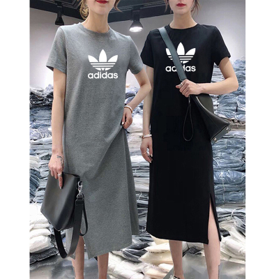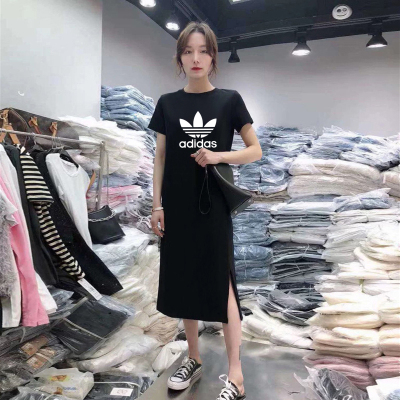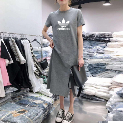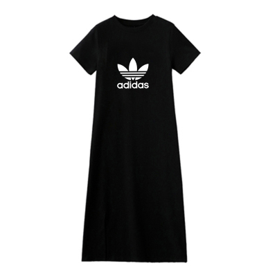 Summer short sleeve dress original does not steal size loose 180g double mill medium length over knee T-shirt skirt