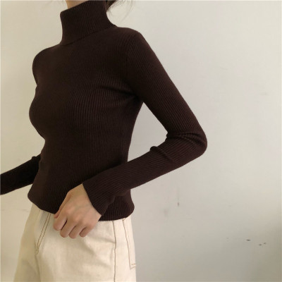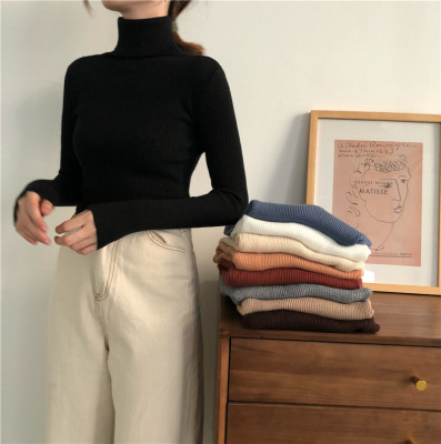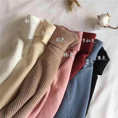 Autumn Korean 2019 new versatile solid color slim fit show thin Pullover high neck warm long sleeve knitted sweater for women