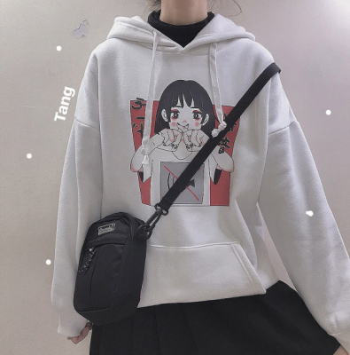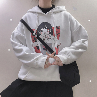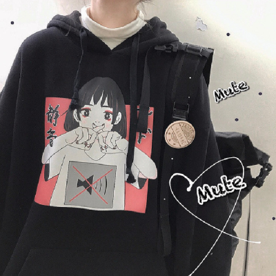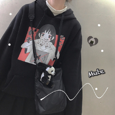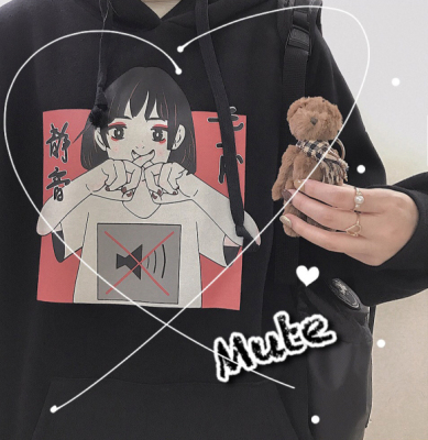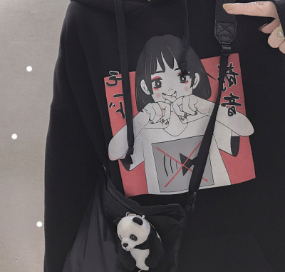 Hooded and plush sweater Japanese dark black thickened ins Korean loose Winter Classic coat