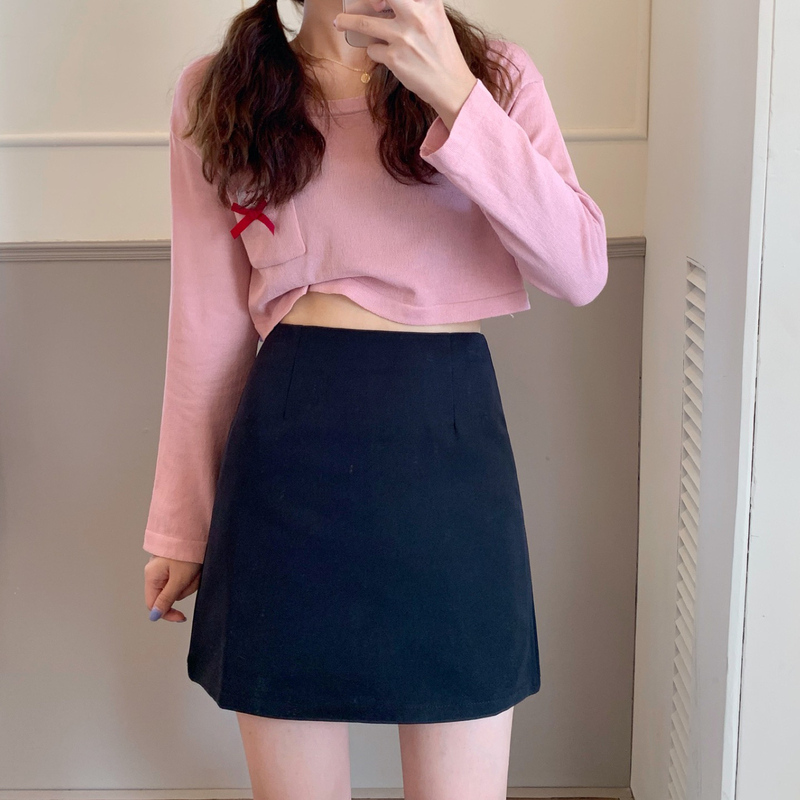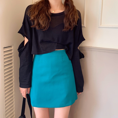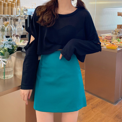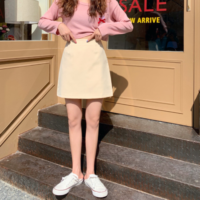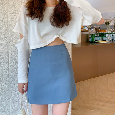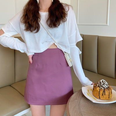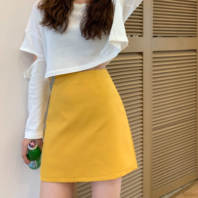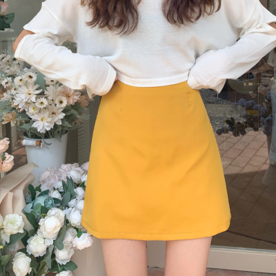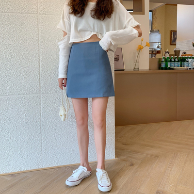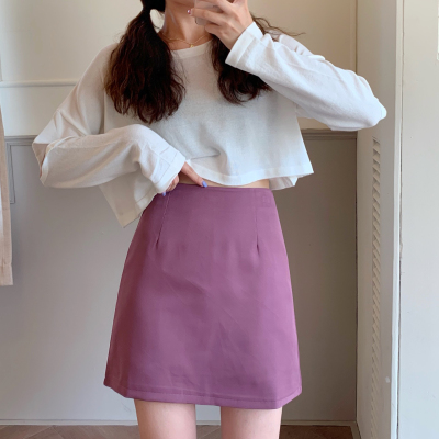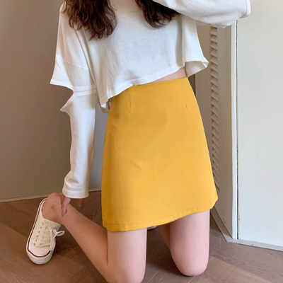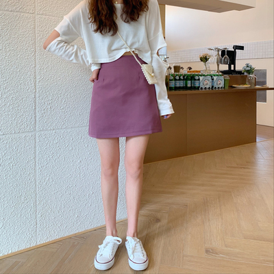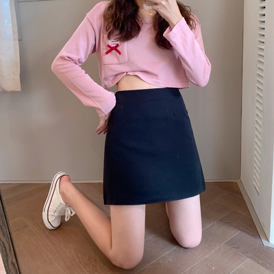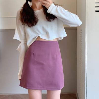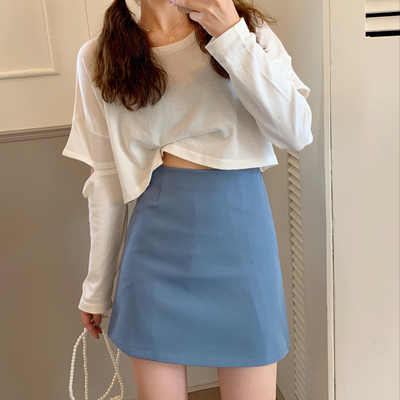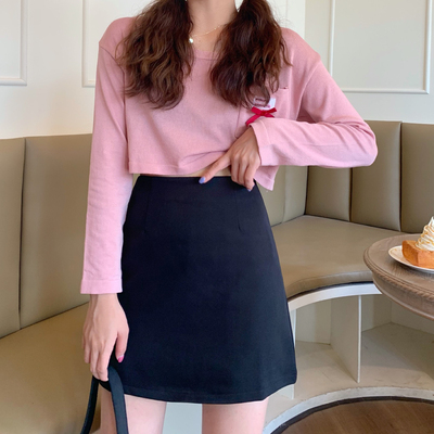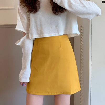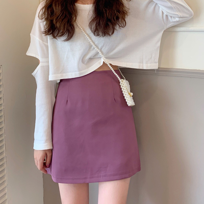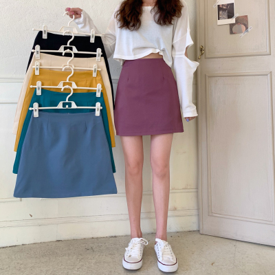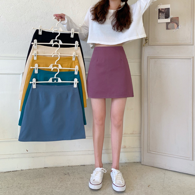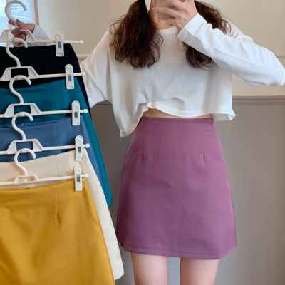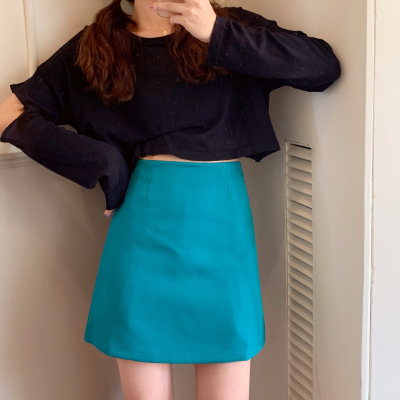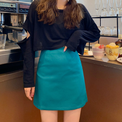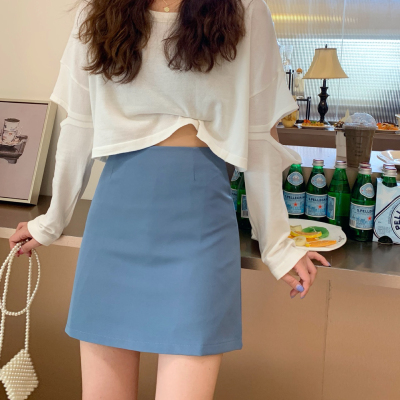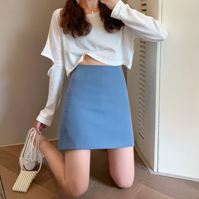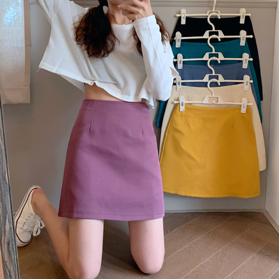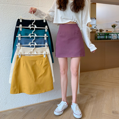 Autumn women's high waisted and slim, all kinds of solid color short A-line buttock wrap skirt skirt
