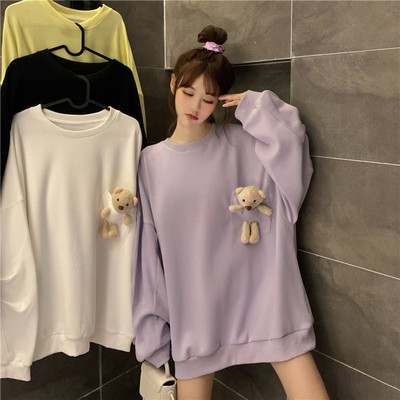 Official picture 6535 fish scale bear design sense sweater women autumn loose Slouchy round neck Pullover Top
