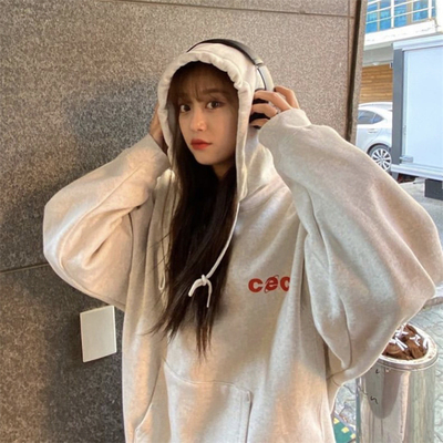 Protected ~ retro College Street casual letter printed CEC Hoodie sweater Korean loose