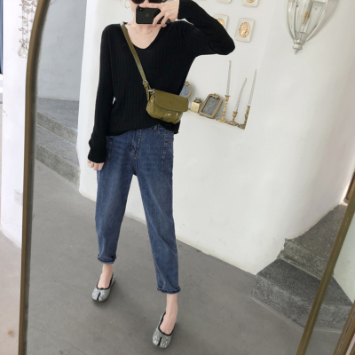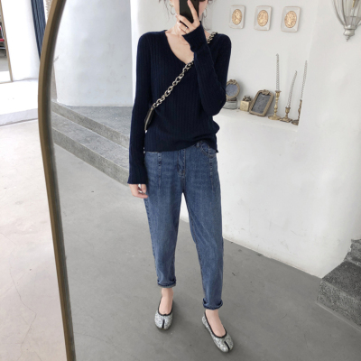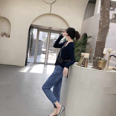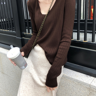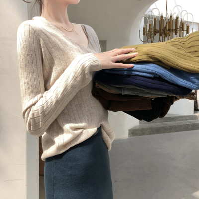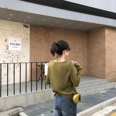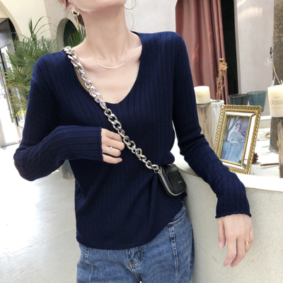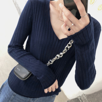 Lazy wind long sleeve autumn clothes women wear loose Pullover V-neck spring and autumn t-shirt t-shirt Korean 2020 versatile top