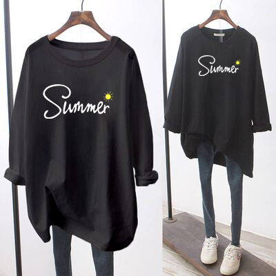 180g double mill autumn 2020 loose long sleeve basic bottoming shirt women's cartoon print Korean version ins