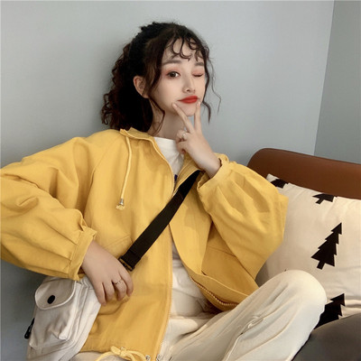 Shooting real price autumn new Korean loose BF style casual short windbreaker work coat female student top