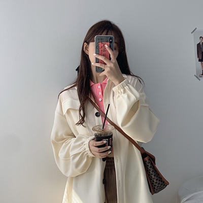 Real shot real price ~ small fragrant style loose Lantern Sleeve work clothes pocket milk white shirt coat woman