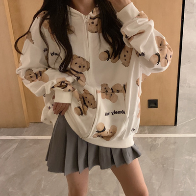 Real price photo manprint bear cardigan Hoodie for men and women couples loose zipper sweater