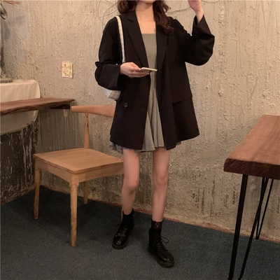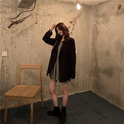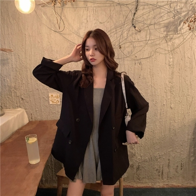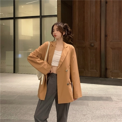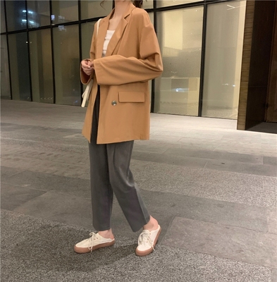 Real shot real price ~ Korean autumn new style straight tube show thin, versatile vertical feeling suit coat~