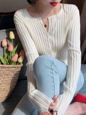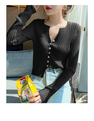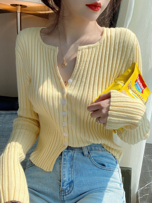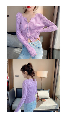 Early autumn V-neck candy color knitted cardigan new thin style underlay Shirt Short versatile top