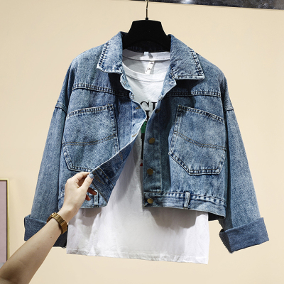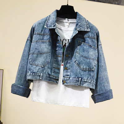 Denim jacket female spring and Autumn New Korean version loose bat sleeve student short Hong Kong style jacket female jaket