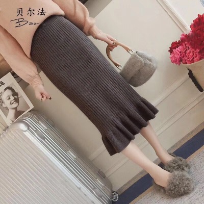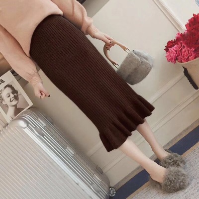 New autumn and winter 2018 high waist Ruffle knitted skirt