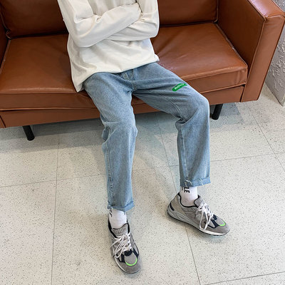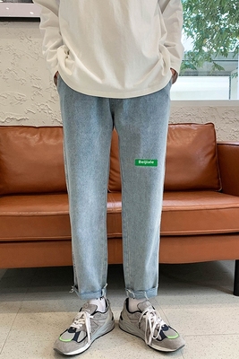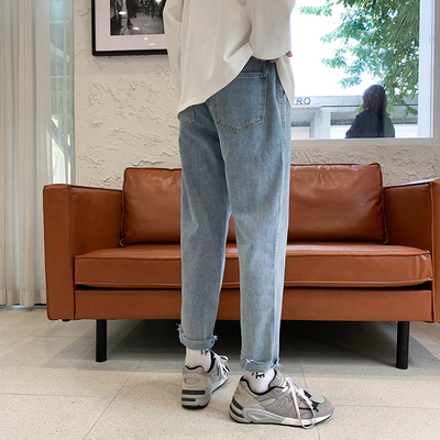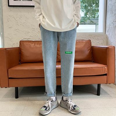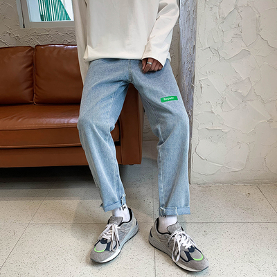 Jeans men's autumn Korean fashion brand students loose straight tube light color nine point casual wide leg pants