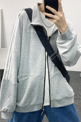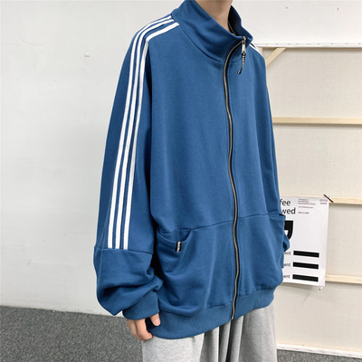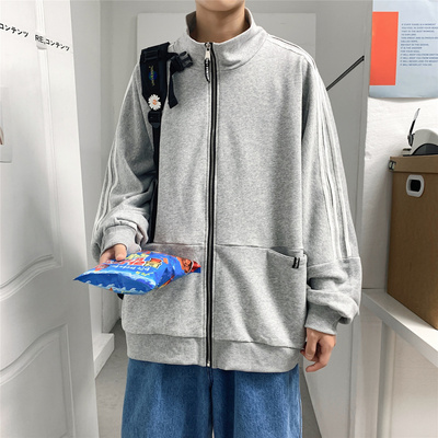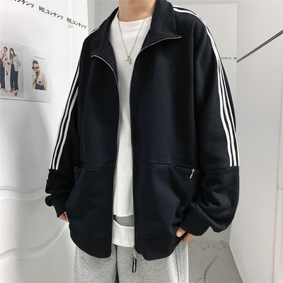 Sweater men's cardigan Korean sports Stripe Jacket Top loose student clothes big fat autumn coat