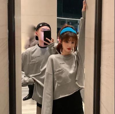 Autumn Korean 2020 new lovers' loose and playful short letter printed long sleeve sweater women's top