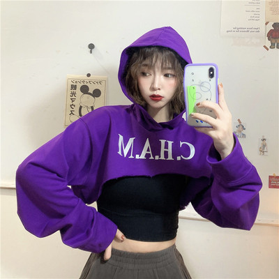 5226 ා fall short long sleeve hooded loose letter reflective Print Blouse 2 fashion