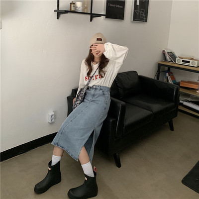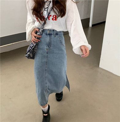 Real shot real price Korean cowboy's gentle trap! Versatile high waist split casual denim skirt