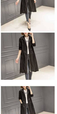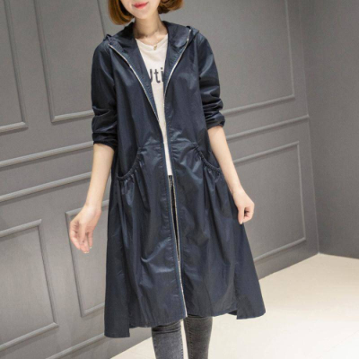 Spring 2020 new Korean hooded mid long over the knee thin spring women's windbreaker coat loose oversized coat