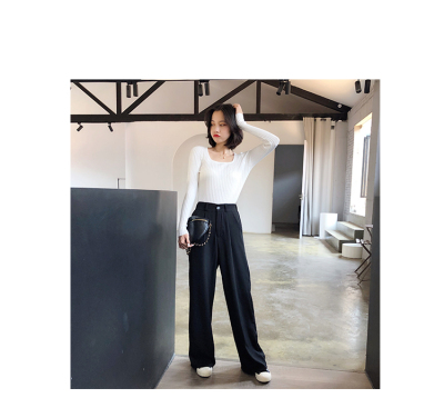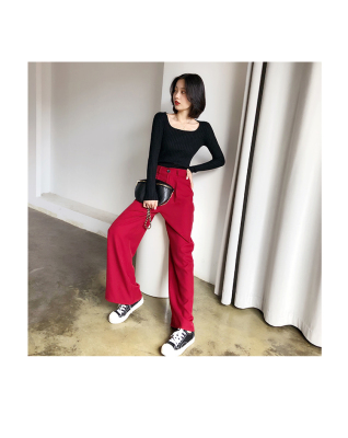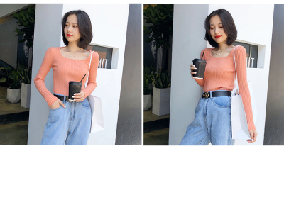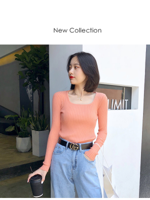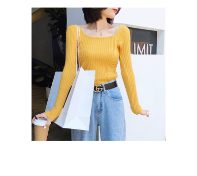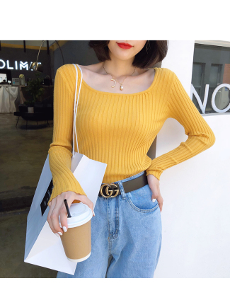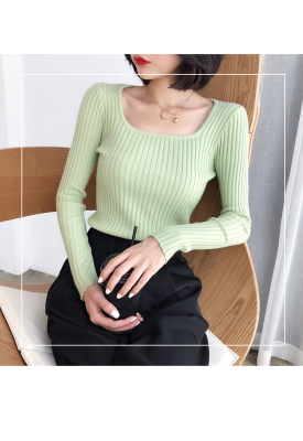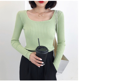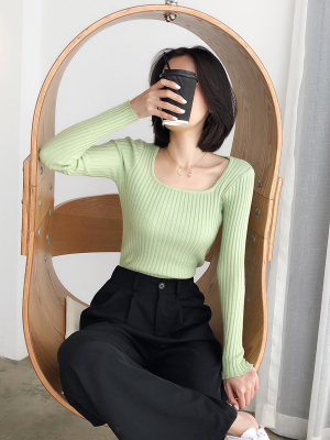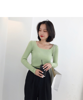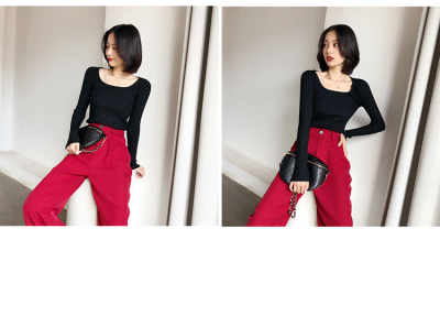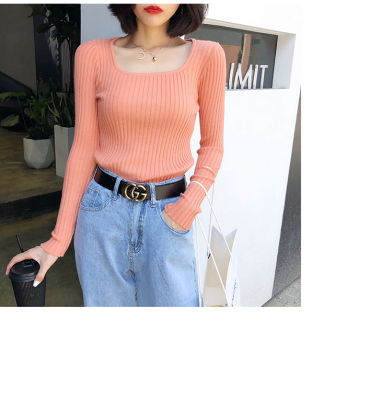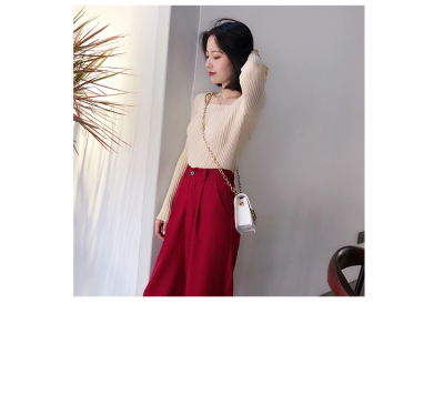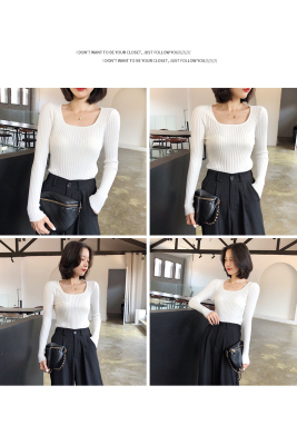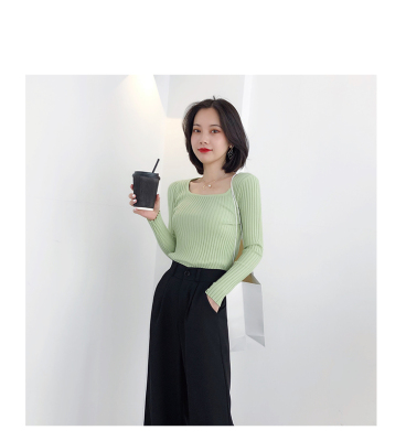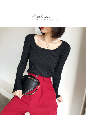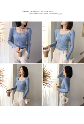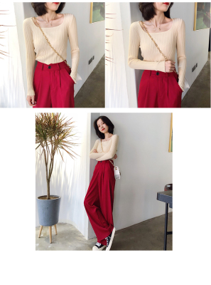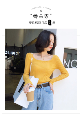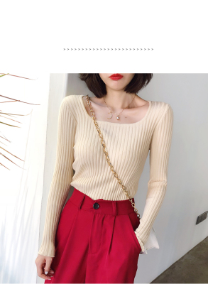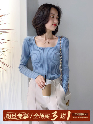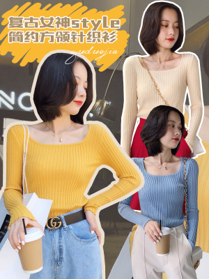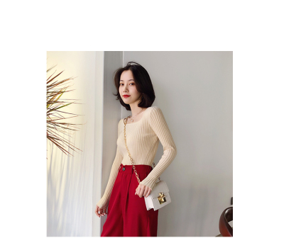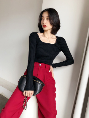 Gentle wind knitwear women's early autumn 2020 new Korean online Red slim slim square collar bottoming Shirt Short top