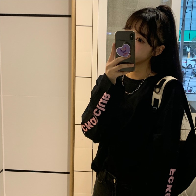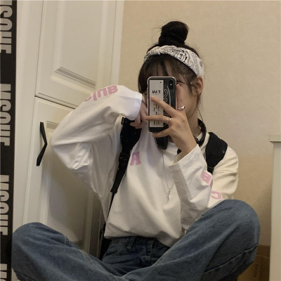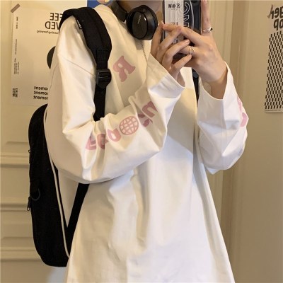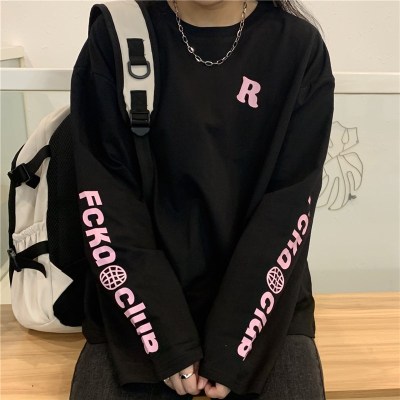 Ins Harajuku autumn new thin round neck loose oversize creative printed cotton long sleeve T-shirt
