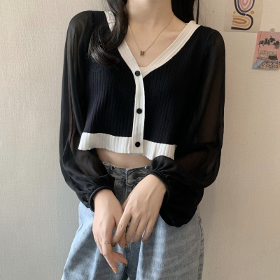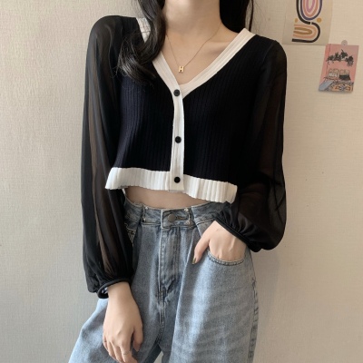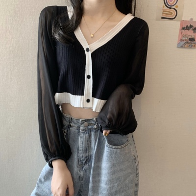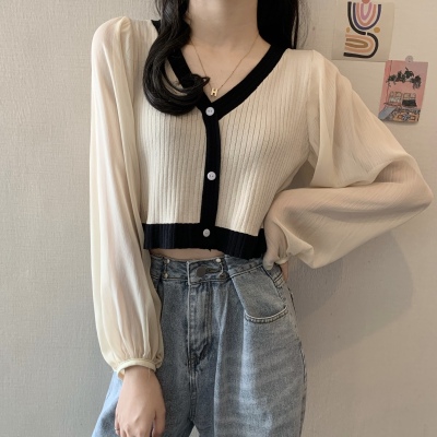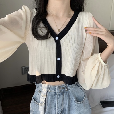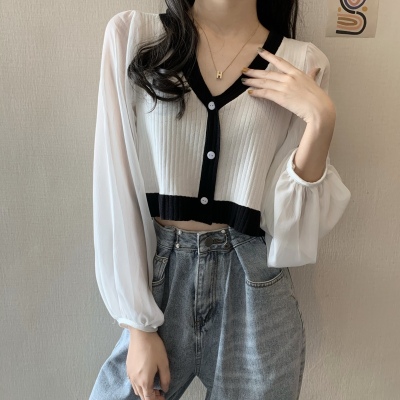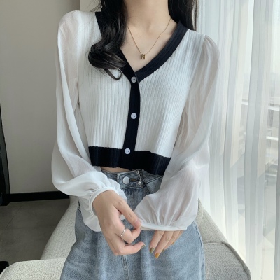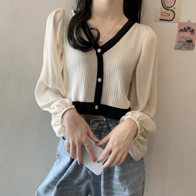 Real shot real price ~ new version of Hanfeng xiaoxiangfeng mesh Lantern Sleeve long sleeve knitwear top