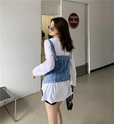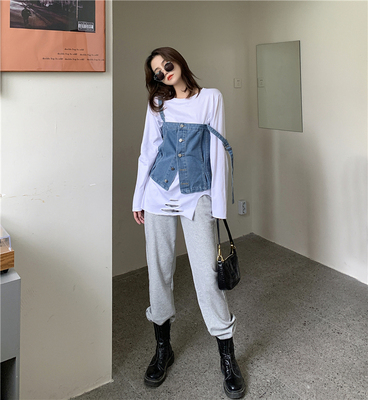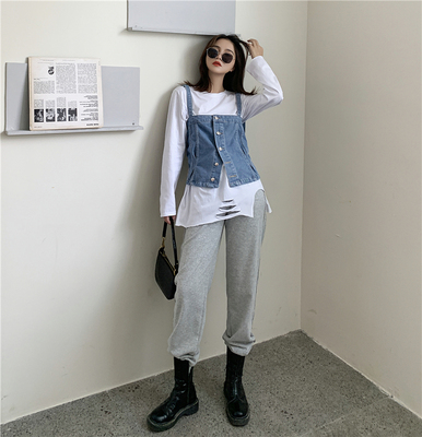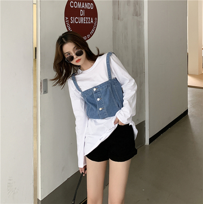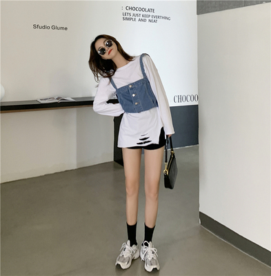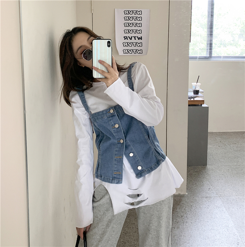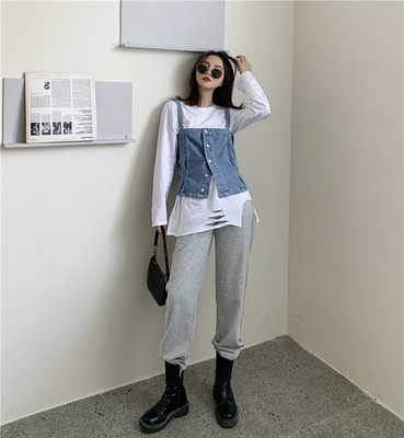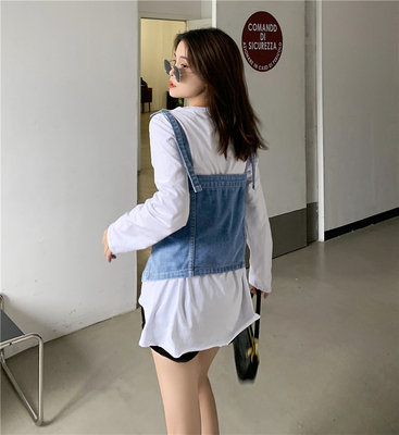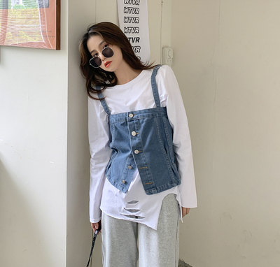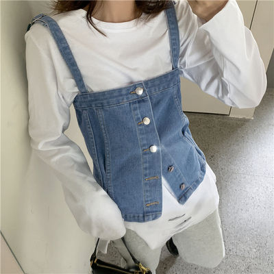 Real shot ~ 2020 autumn new personalized denim suspender vest for women