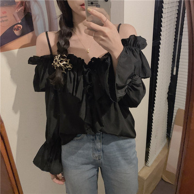 Real shot real price retro one shoulder top women lace off shoulder collarbone heart sling shirt