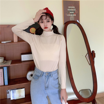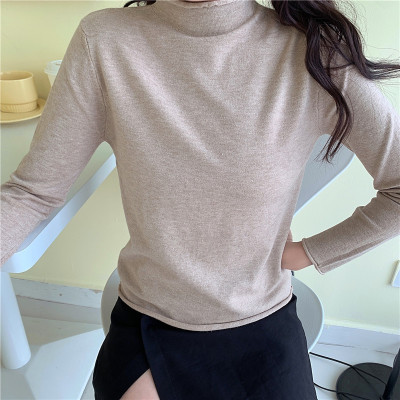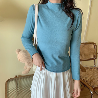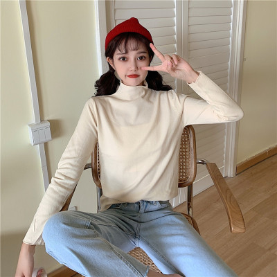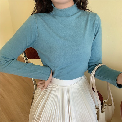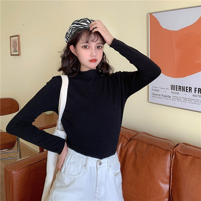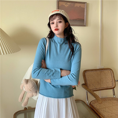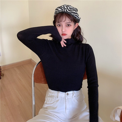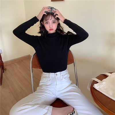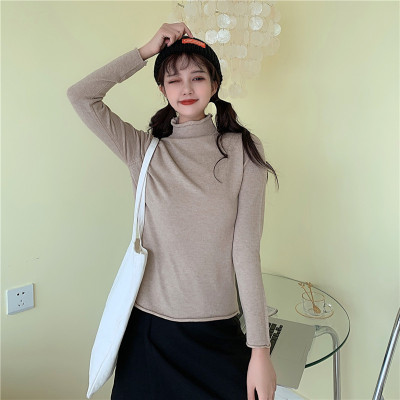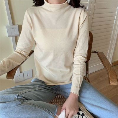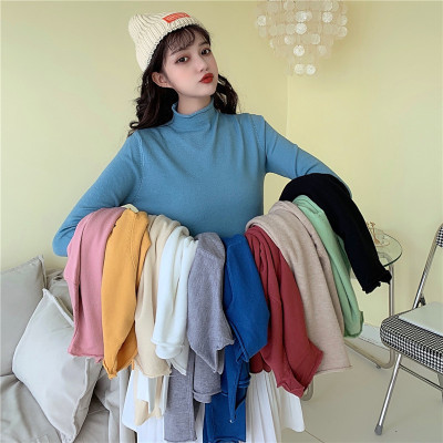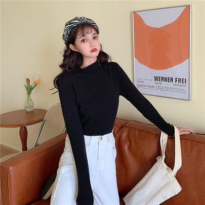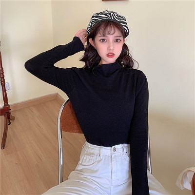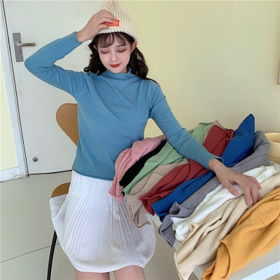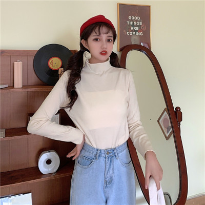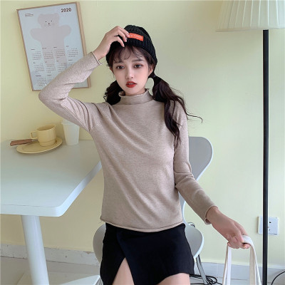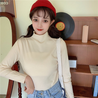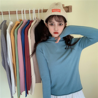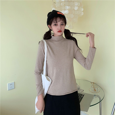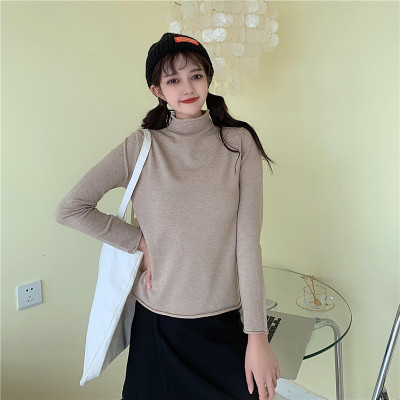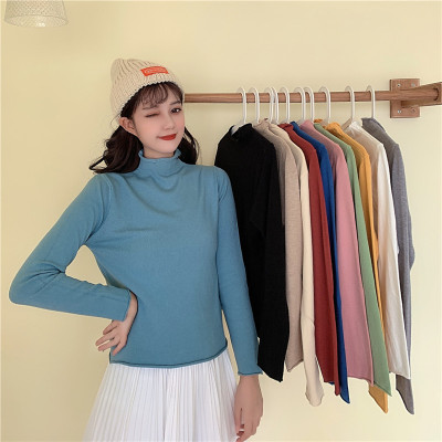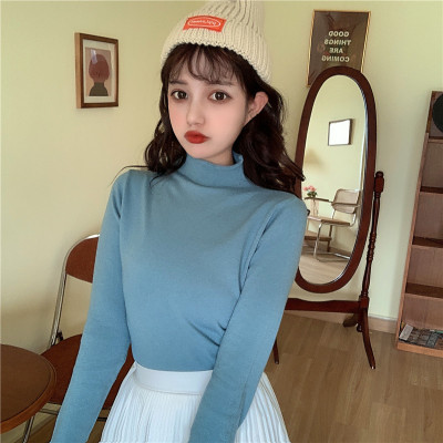 Real shot 2020 new net red Korean version solid color basic half high collar bottoming Shirt Top Women's autumn long sleeve sweater