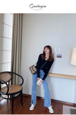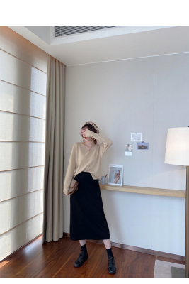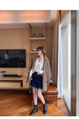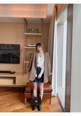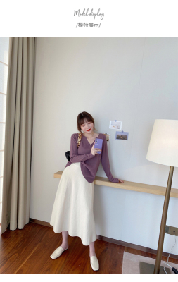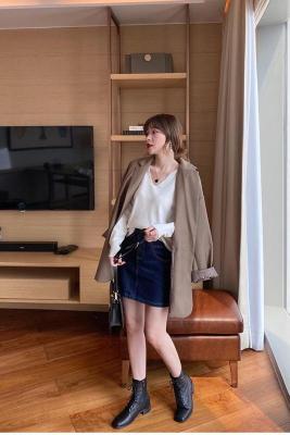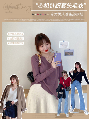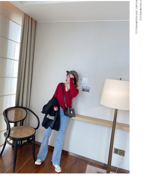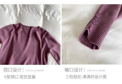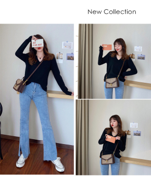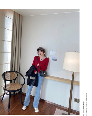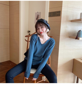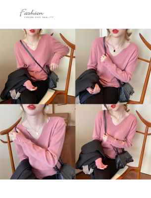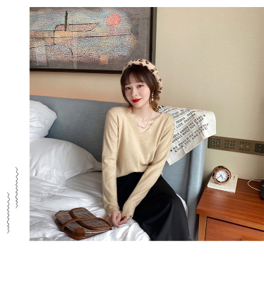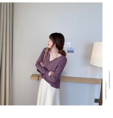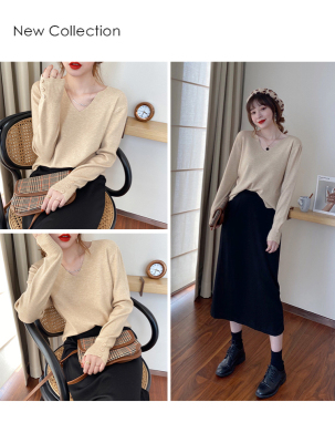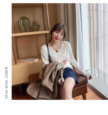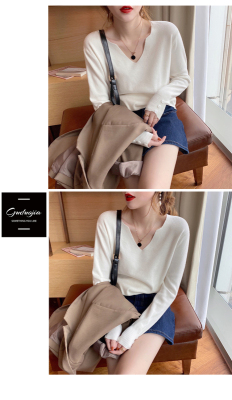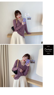 Gentle wind T-shirt autumn new women's V-Neck Sweater loose wear 2020 early autumn winter top bottom coat