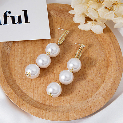 Real shot 925 silver needle exaggerated personality big Pearl long earrings show thin and versatile atmosphere earrings earrings earrings