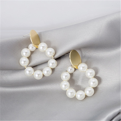 Real shot 925 silver needle exaggerated personality pearl Circle Earrings European and American cool wind earrings earrings earrings