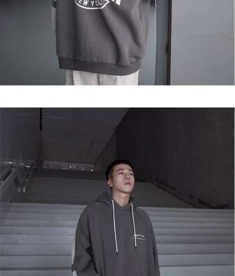 Spring and autumn fashion brand plush loose letter printing trend ins hip hop couple lazy style hooded sweater man