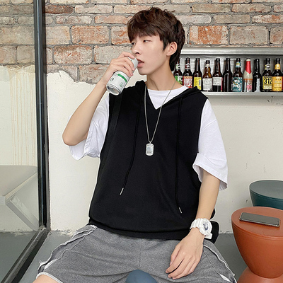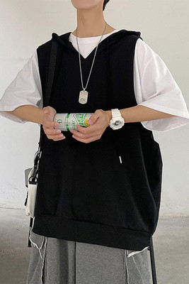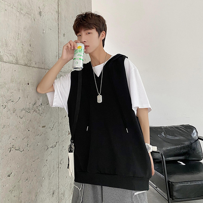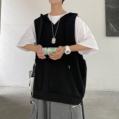 Summer high street sleeveless vest for men's wear trendy Hong Kong Style loose casual hooded waistcoat