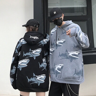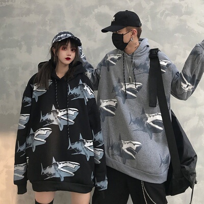 Ins couple's Hooded Sweater female student Korean version loose BF yuansuo wind autumn and winter Plush coat trend