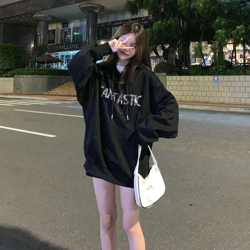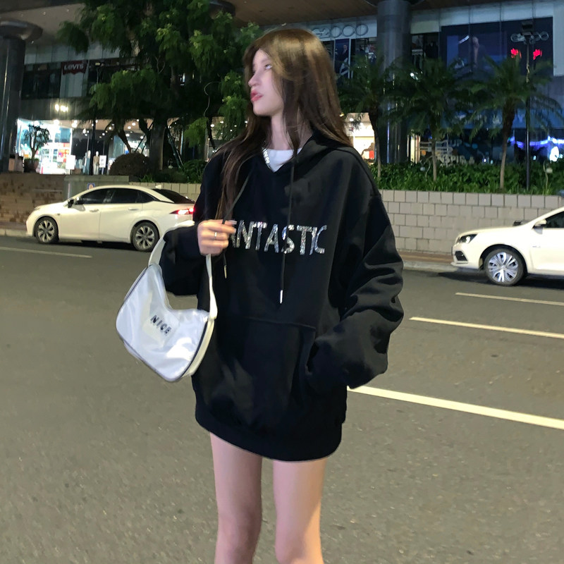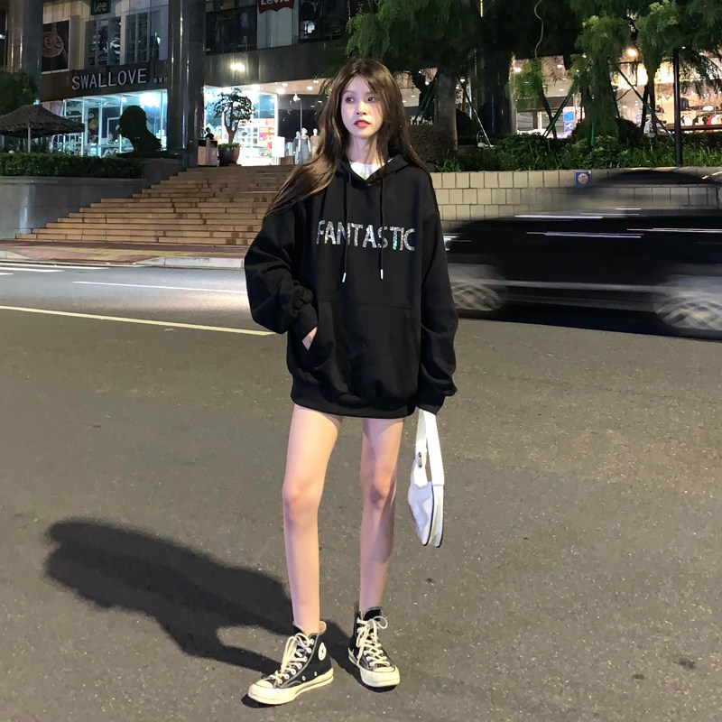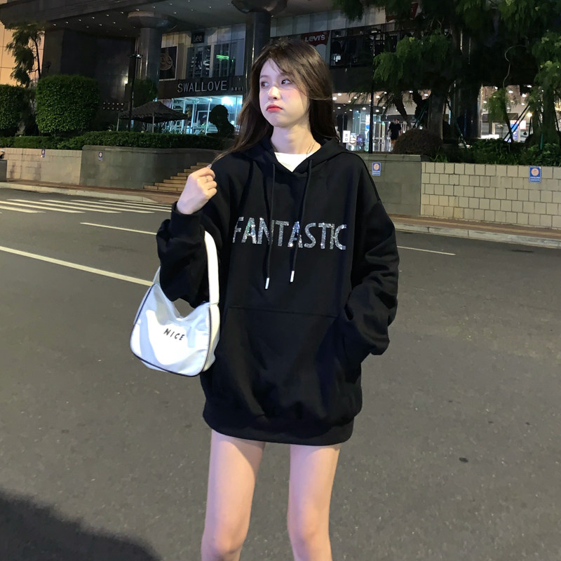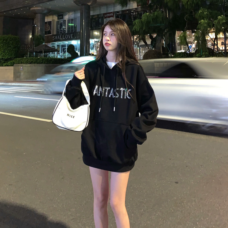 Real shot fish scale cloth 7525 cotton thin sweater women's hooded hot drill