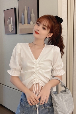 V-neck drawstring Chiffon short sleeve 8 colors