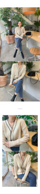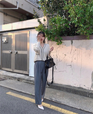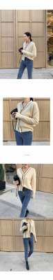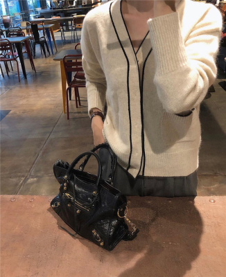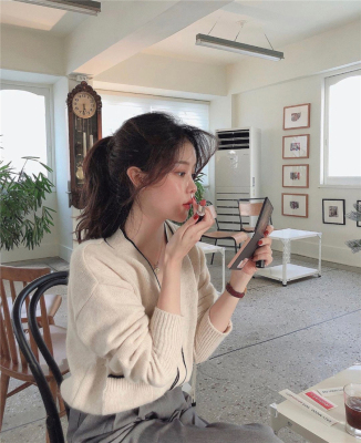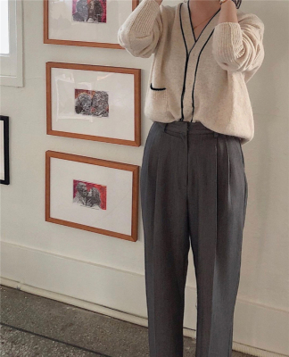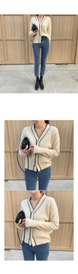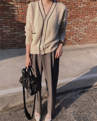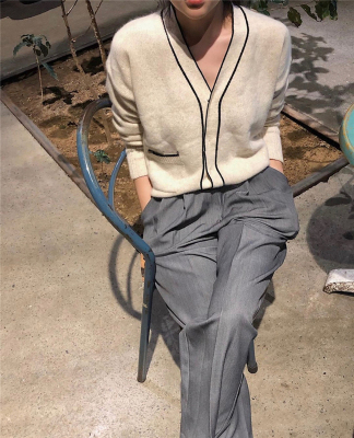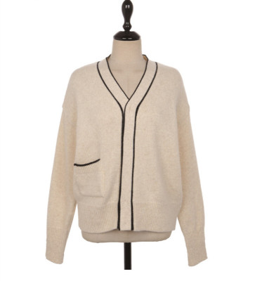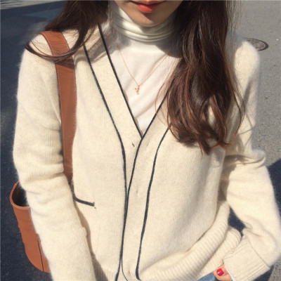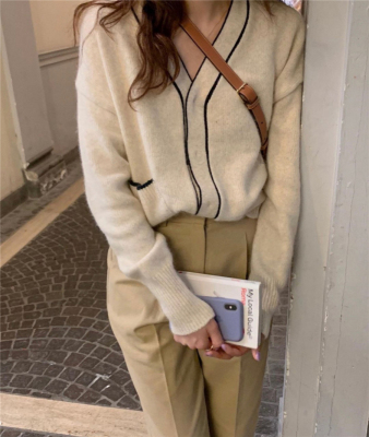 Korean ins style simple line color matching side pocket V-neck knitted cardigan loose coat sweater