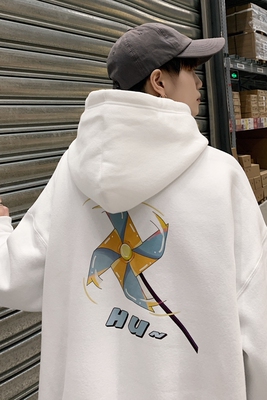 Men's Hoodie trend: Spring Autumn ins Hong Kong Style Hoodie loose fashion brand Pullover white student coat