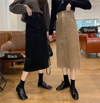 Korean version of casual slim corduroy back slit skirt
