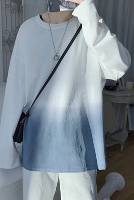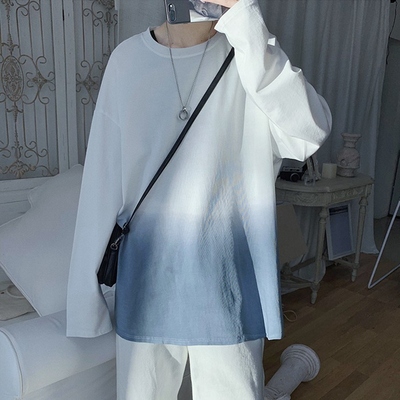 Autumn color gradient long sleeve t-shirt men's loose fashion brand ins sweater casual clothes Korean version trend versatile men's wear