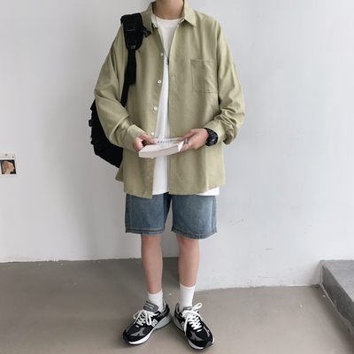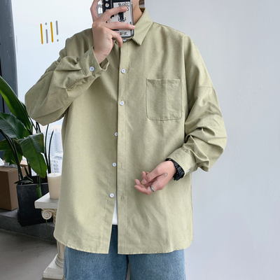 Shirt men's Korean version trendy, handsome and versatile men's casual top puffy, handsome and loose ins Hong Kong style long sleeves