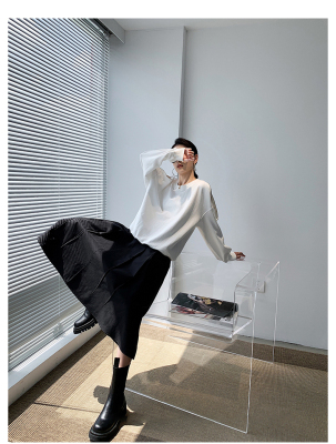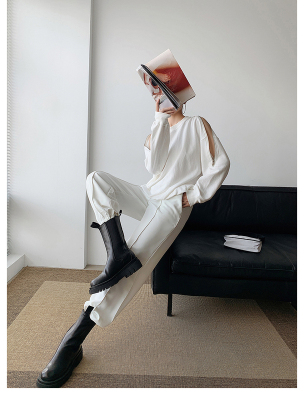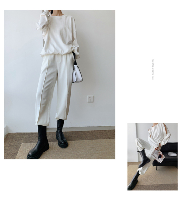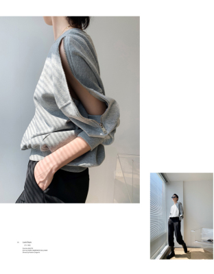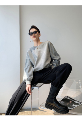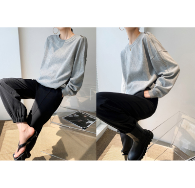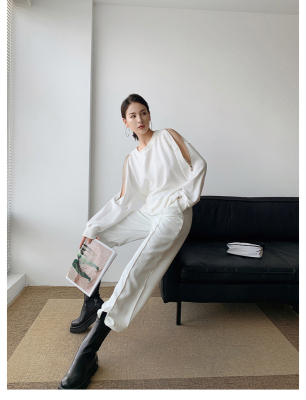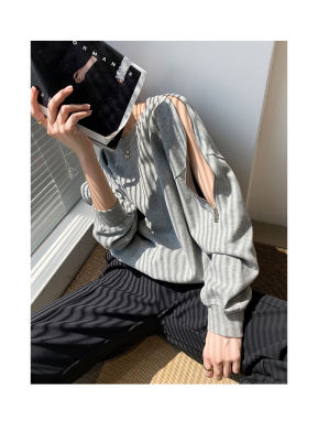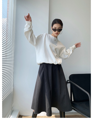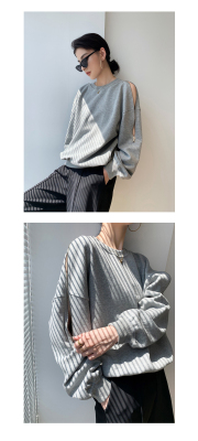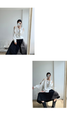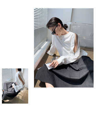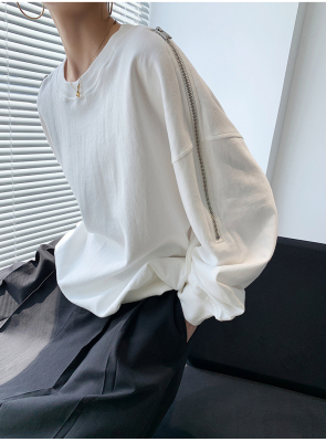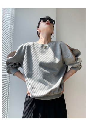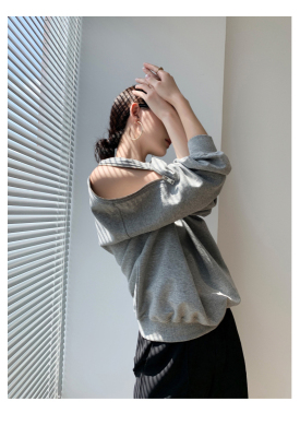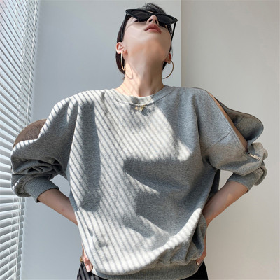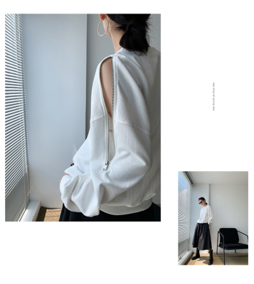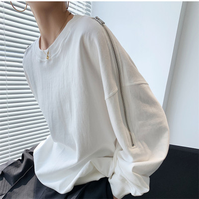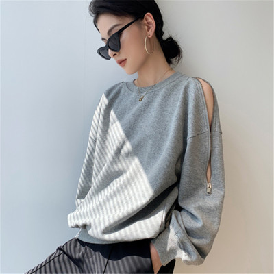 Fried Street sweater women 2020 new autumn off shoulder zipper loose Korean design feeling long sleeve top fashion