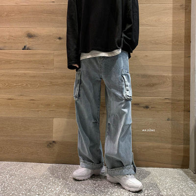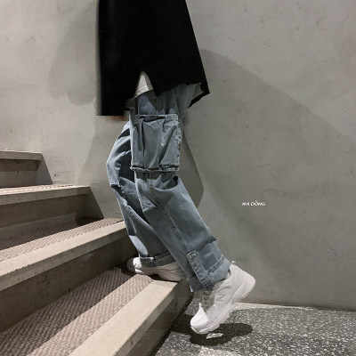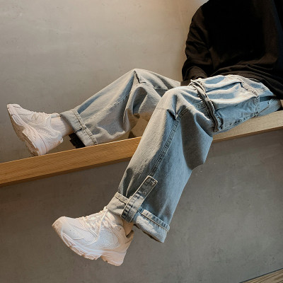 New jeans men's and Korea's trendy loose work clothes casual straight pants port style CEC casual versatile pants