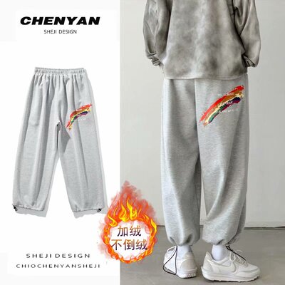 Autumn and winter new ins brand loose Plush trousers hip hop sports port style casual corset pants male student