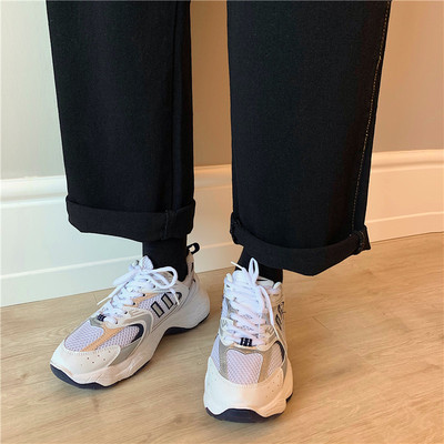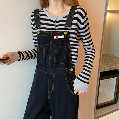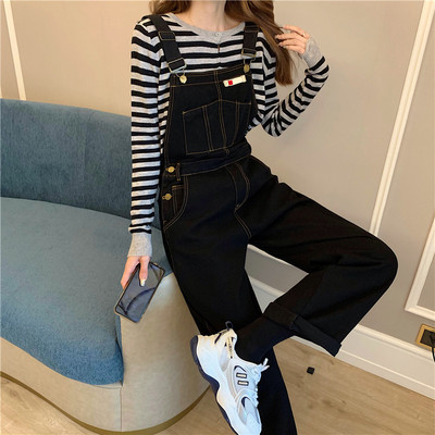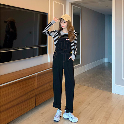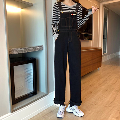 Real shot real price autumn straight tube loose high waist show thin broad leg jeans embroidered pants