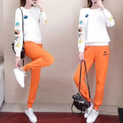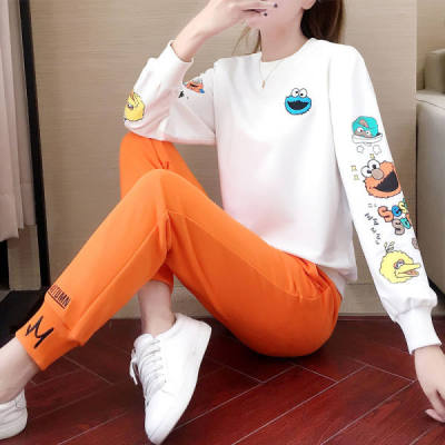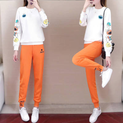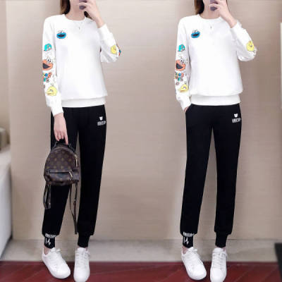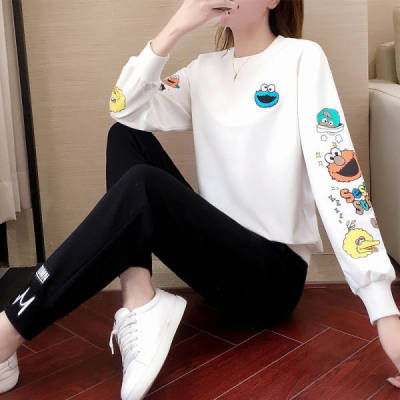 Hong Kong 2020 summer Korean fashion leisure sports suit women cartoon short sleeve T-shirt pants two pieces