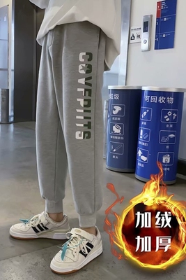 Winter casual pants men's Plush warm Leggings fashionable loose BF Hong Kong Style 15-year-old student sports autumn pants