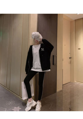 Hooded sweater women's spring and Autumn New Korean version of loose and super hot set of versatile student top