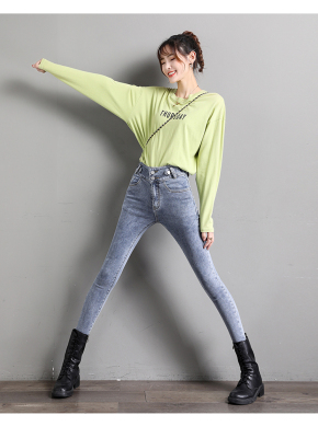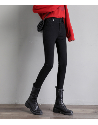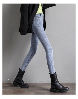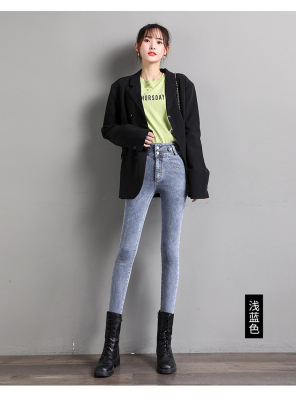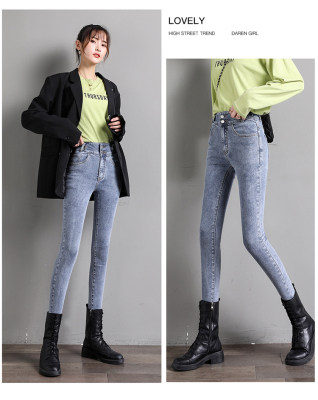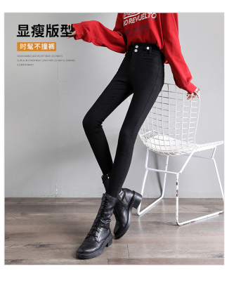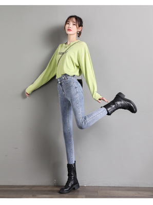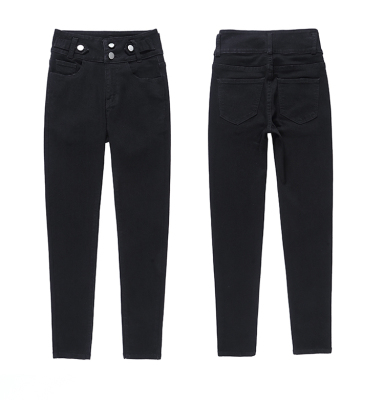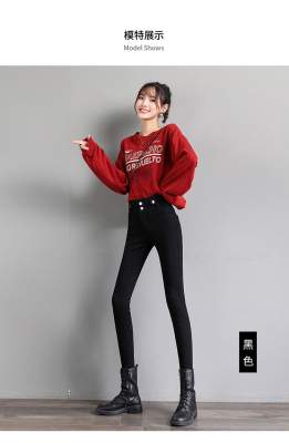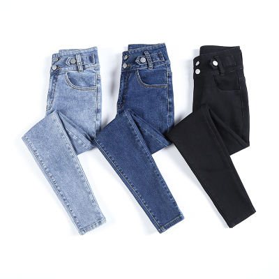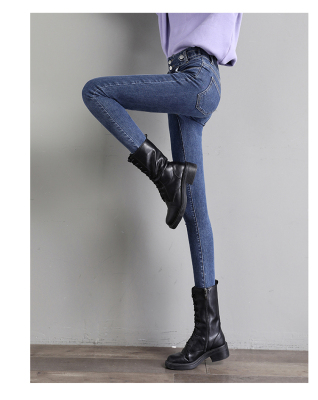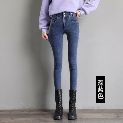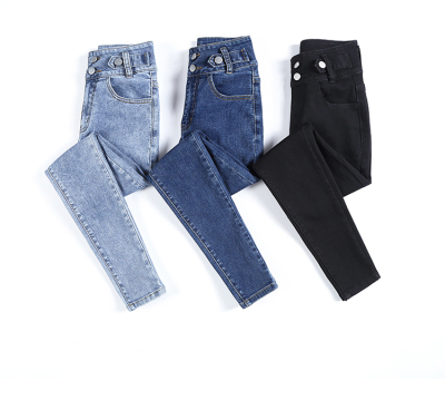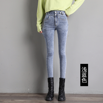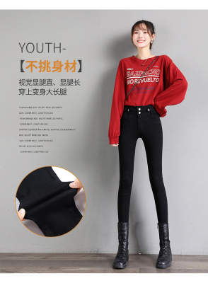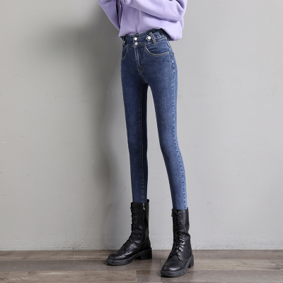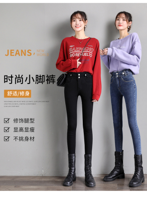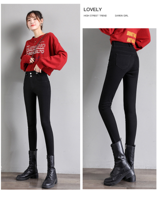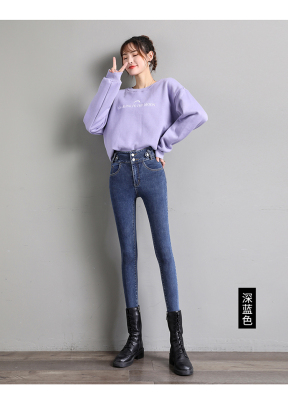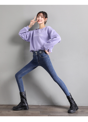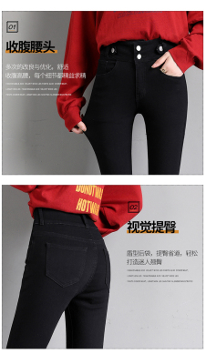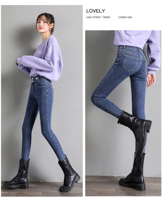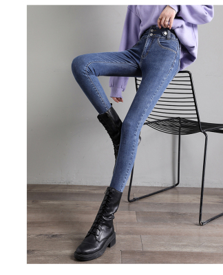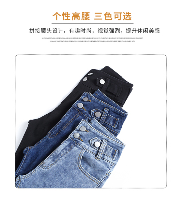 Real shot 2020 autumn new large double button high waist jeans women's fat mm small leg pants versatile fashion 200 kg