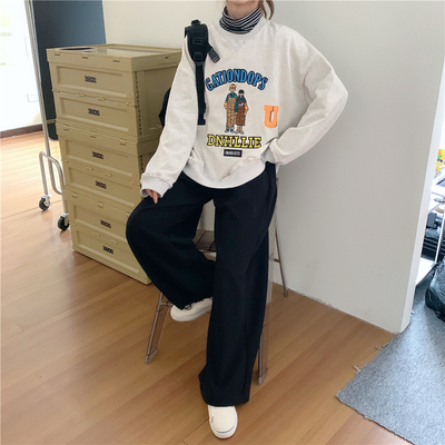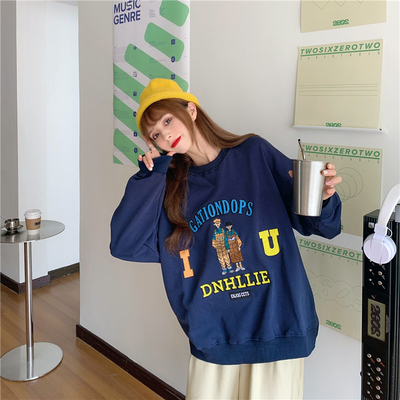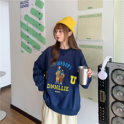 New style cartoon heavy industry embroidery Plush thickened sweater women's 13% cotton plush 270g