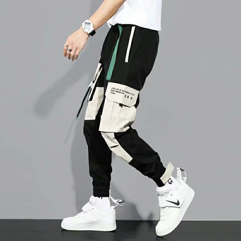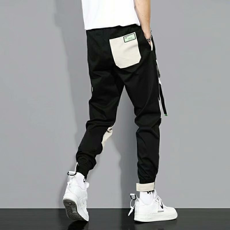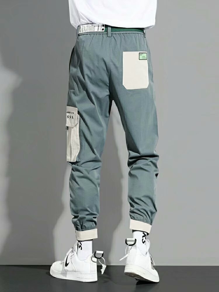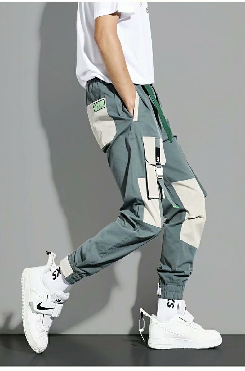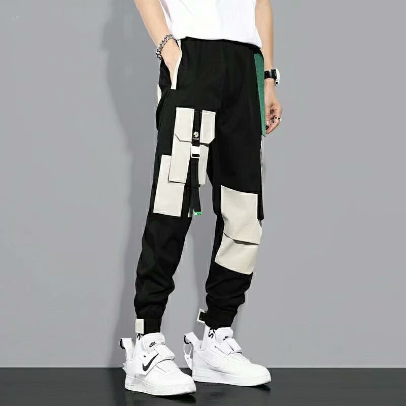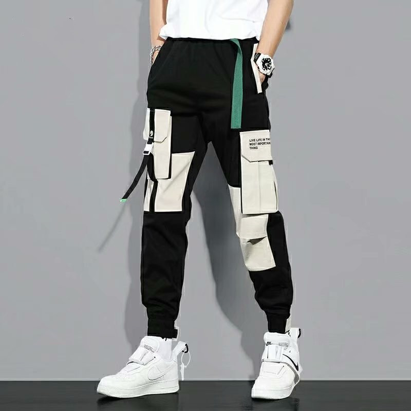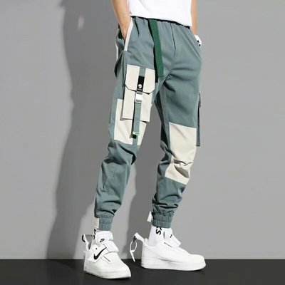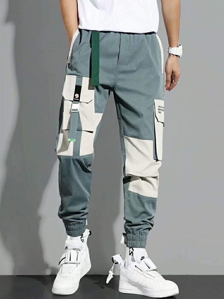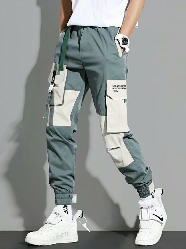 Spring and autumn overalls men's loose fashion brand stitching Velcro Leggings men's ins Korean casual Capris
